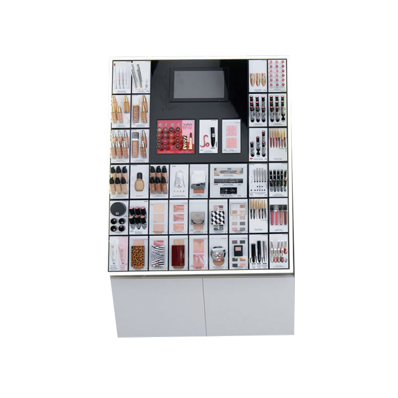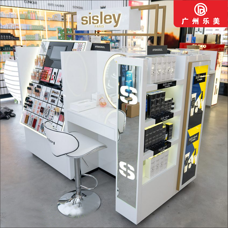 简约时尚款彩妆体验台木质烤漆亚克力台面展示柜带镜子四面柜
