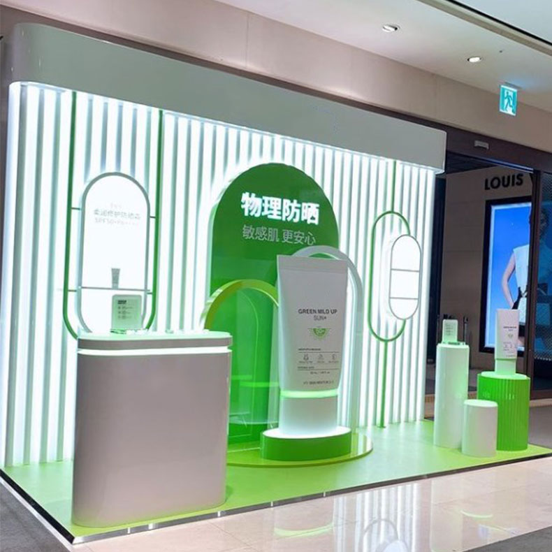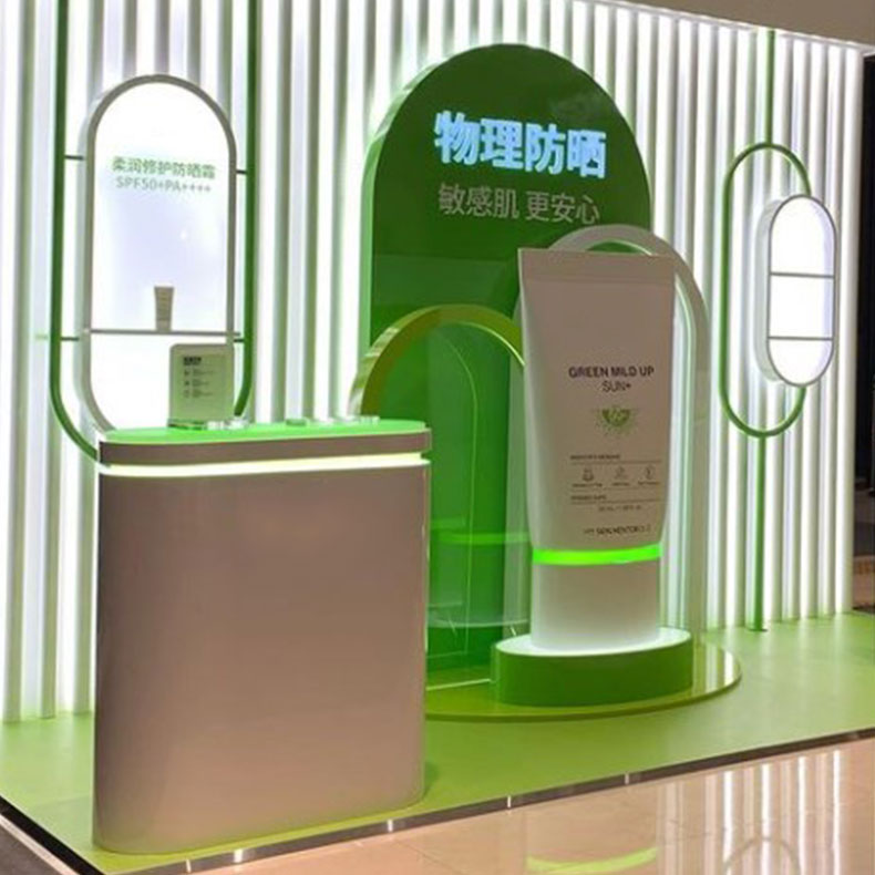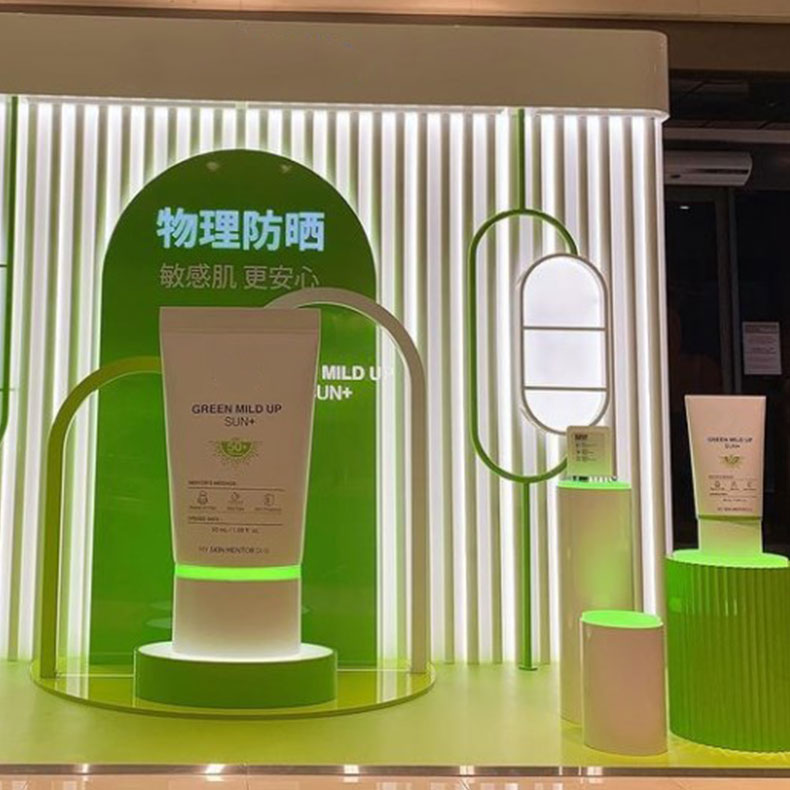 广州乐美展示用品有限公司为品牌专门定制的亚克力化妆品展柜,制作精美。