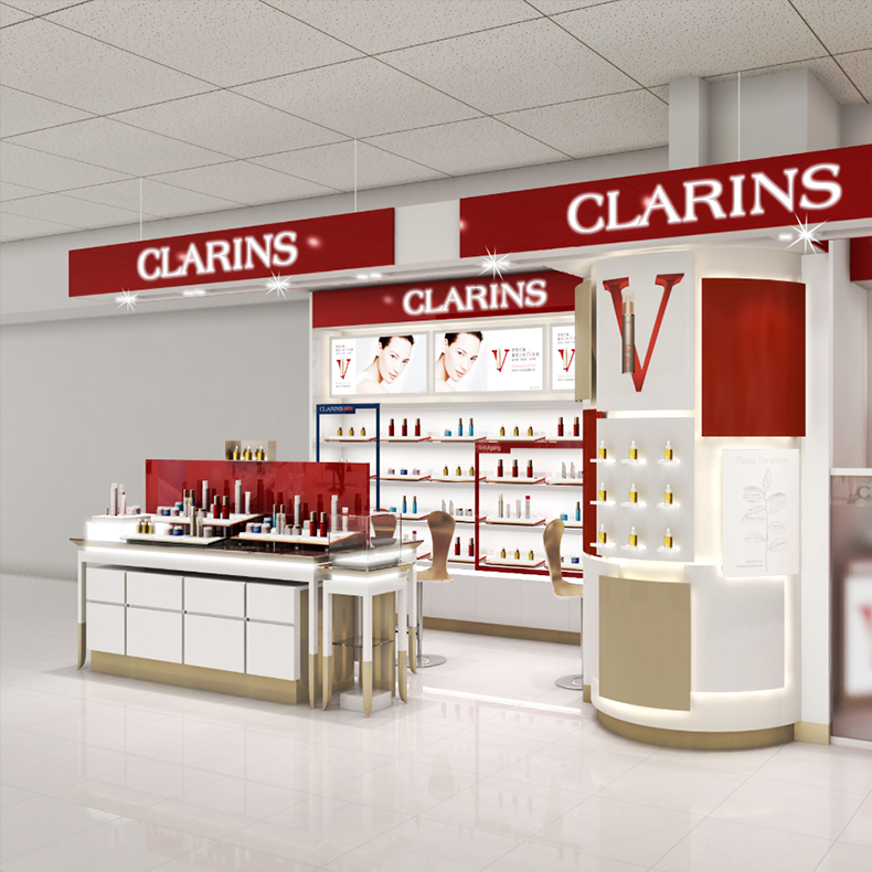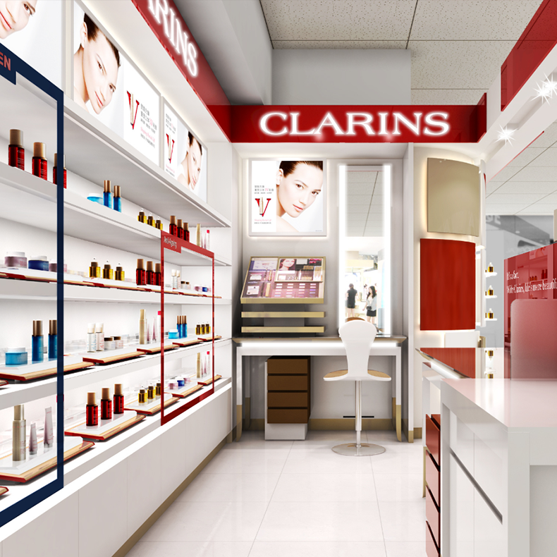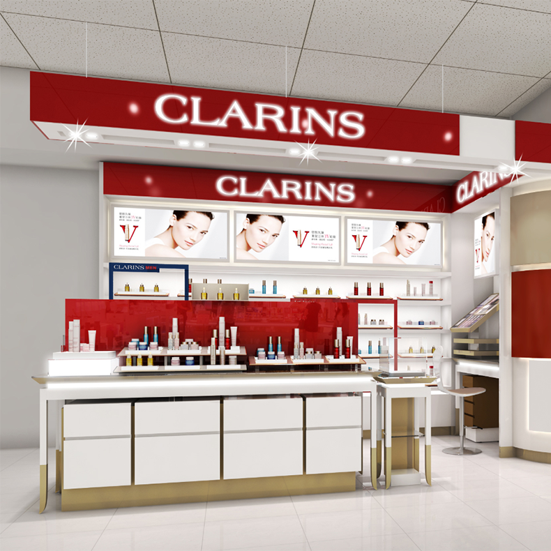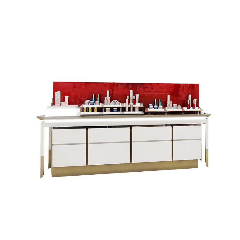 商场白红品牌_木质_高端_彩妆简约现代化妆品彩妆展柜可定制