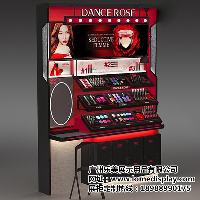 乐美展示主营产品:珠宝展柜、化妆品展示柜、服装皮具展示柜、手机展示柜等。