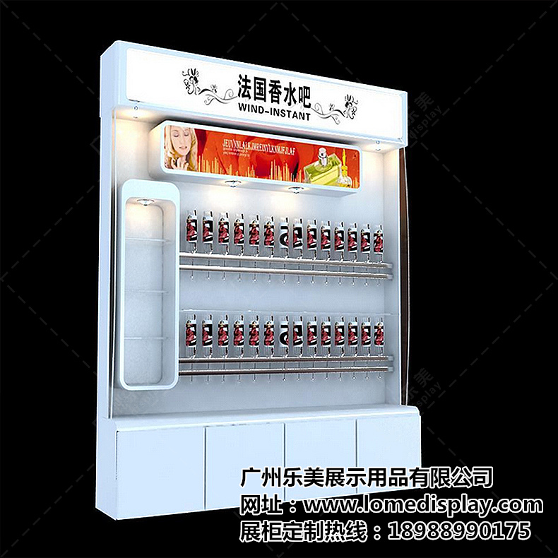 乐美展示主营产品:珠宝展柜、化妆品展示柜、服装皮具展示柜、手机展示柜等。