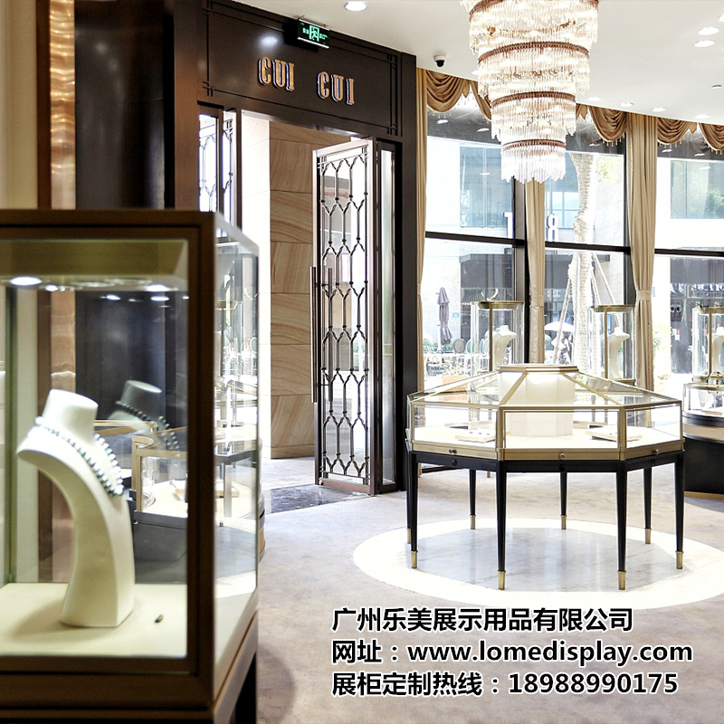 乐美展示主营产品:珠宝展柜、化妆品展示柜、服装皮具展示柜、手机展示柜等。