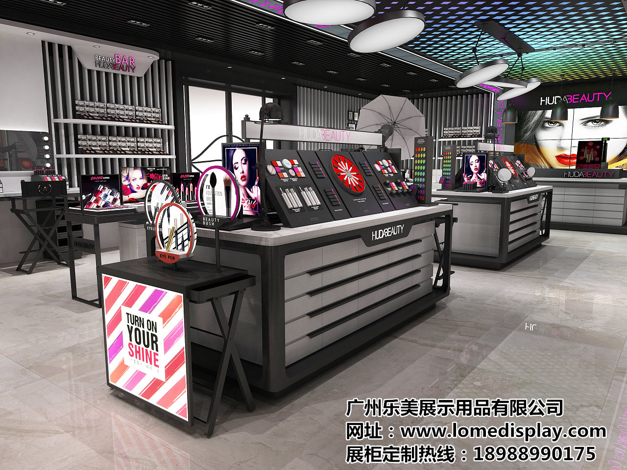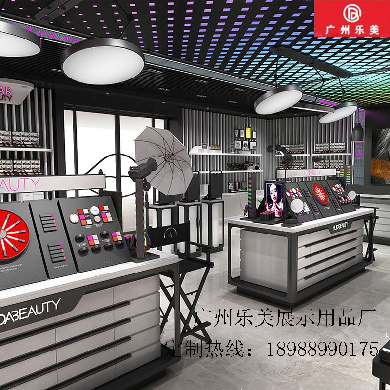 实力厂家展柜制作-化妆品护肤品彩妆展示柜-韩式创意展示架来图定制