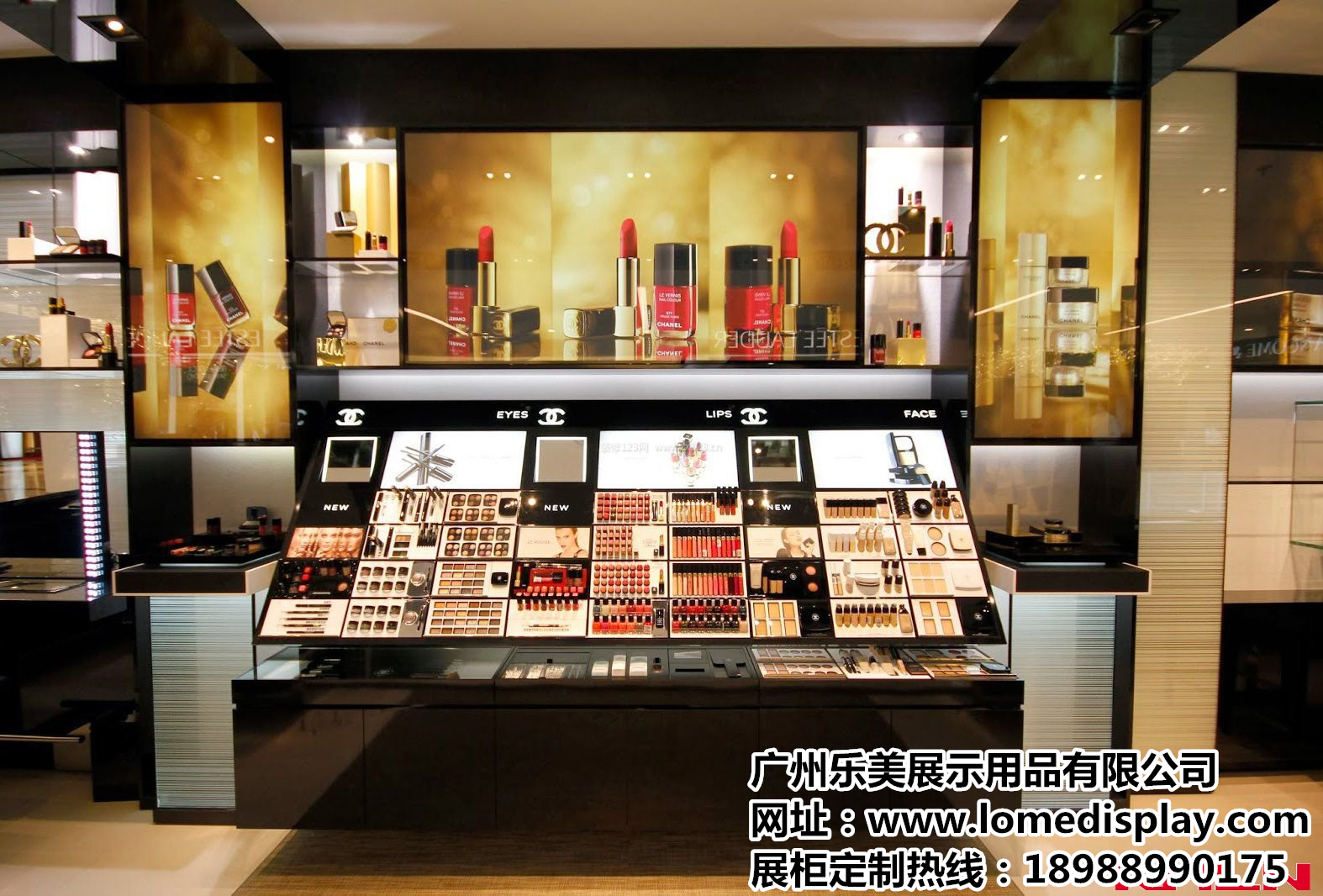 乐美展示主营产品:珠宝展柜、化妆品展示柜、服装皮具展示柜、手机展示柜等。