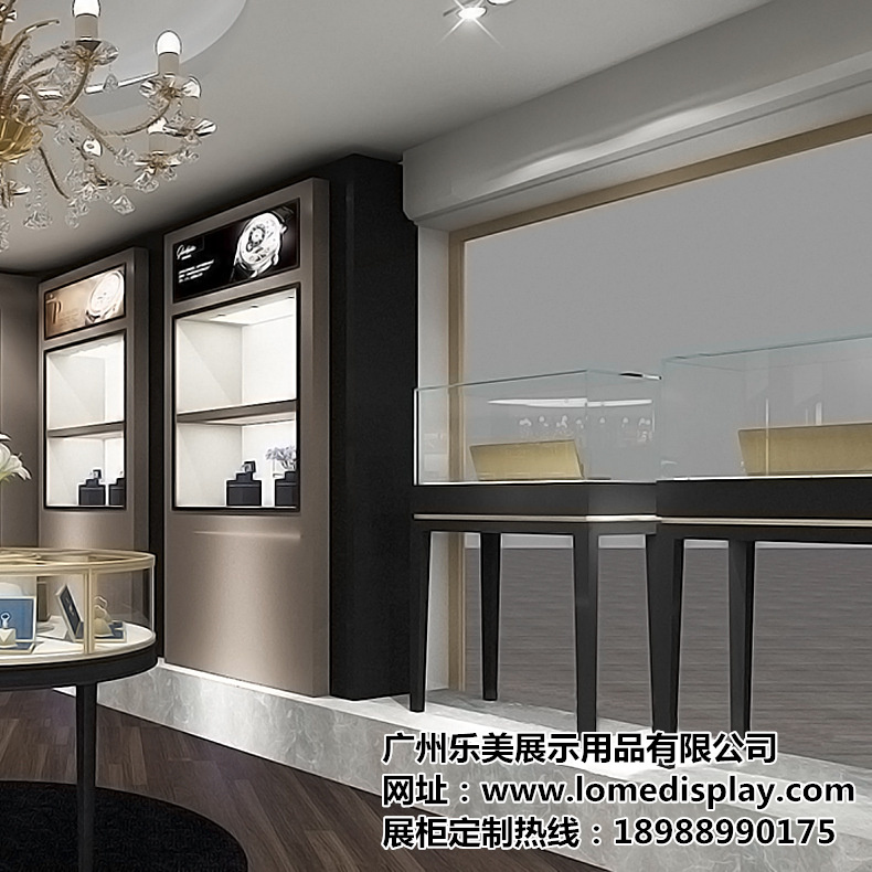 乐美展示主营产品:珠宝展柜、化妆品展示柜、服装皮具展示柜、手机展示柜等。