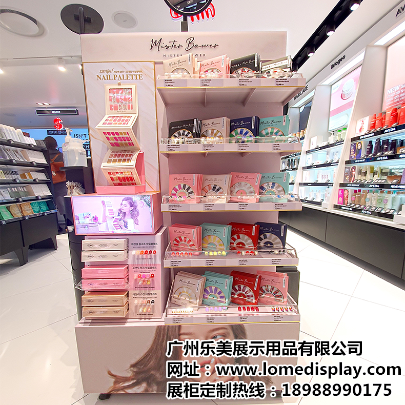 商场超市店铺促销单面置物架粉色简约面膜化妆品护肤品展示架展示柜